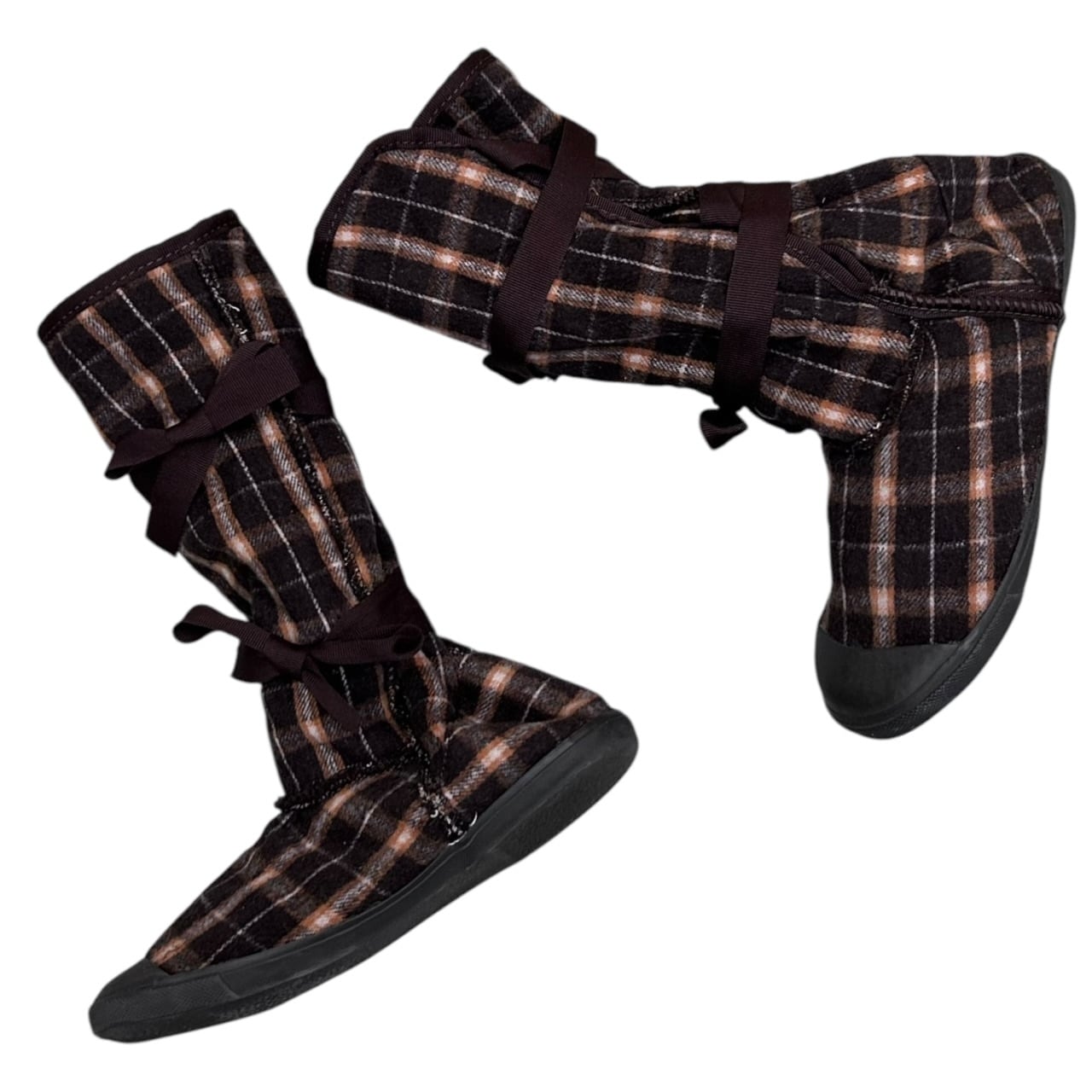 plaid faux fur lined high top boots
