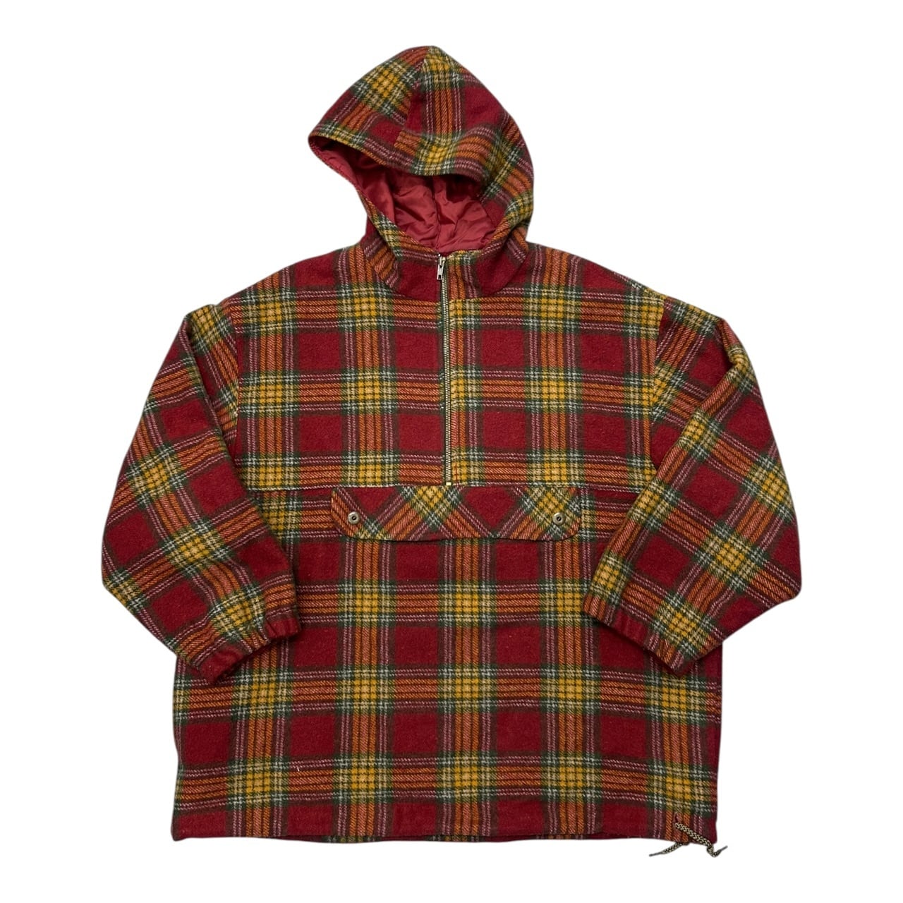 80s plaid wool anorak hoodie