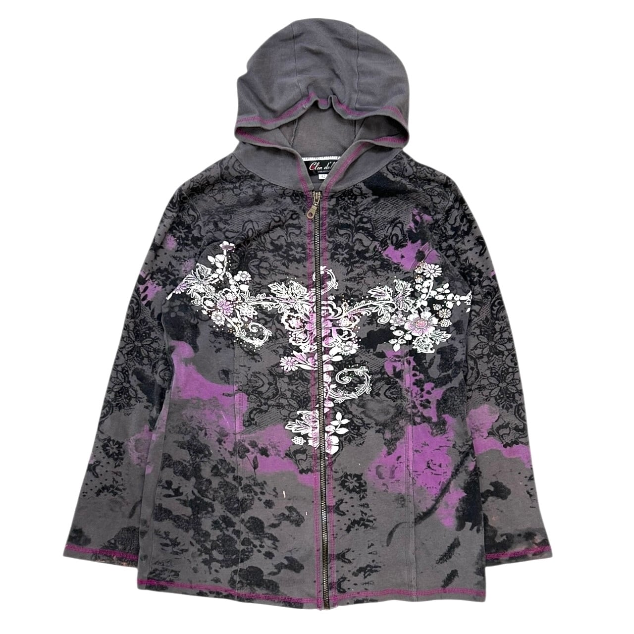 00s gothic floral print hoodie